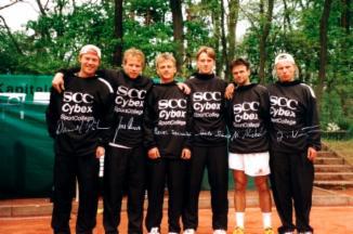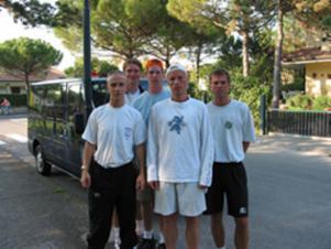 Einige Spieler des TC SCC e.V. während der Vorbereitungsreise 2003 in Lignano am Gardasee.